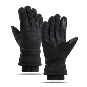 冬季保暖手套男士加长加厚防风防水运动户外旋钮触屏滑雪机车手套