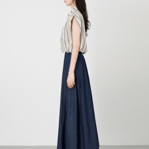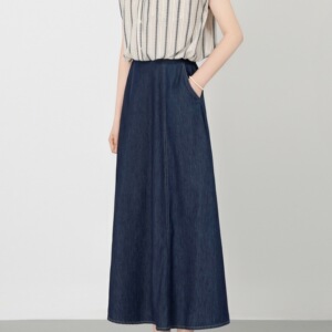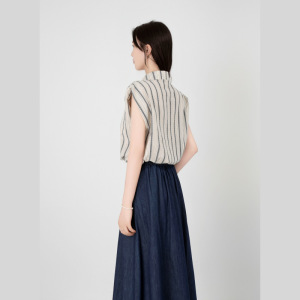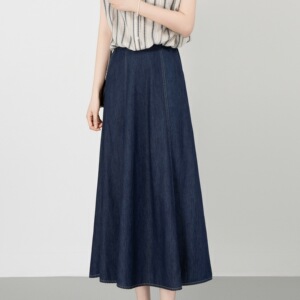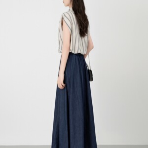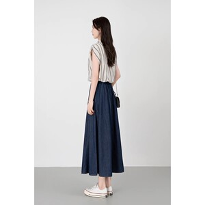 现货 巨好看短袖条纹衬衫夏长款a字牛仔半身裙两件套装