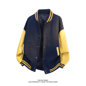 棒球服外套男士春秋美式复古新款高街痞帅休闲PU皮拼接夹克上衣男