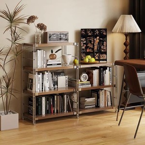 包豪斯置物架落地多层书架可移动客厅黑色钢木收纳架厨房储物架子