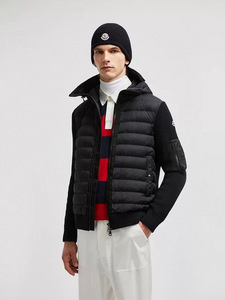 毒家现货蒙家拼羊毛针织袖连帽羽绒服男冬季时尚拉链外套短薄羽绒