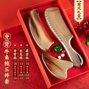 【国风梳礼盒】脊背牛角梳三件套