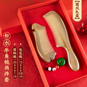 【国风梳礼盒】白水牛角梳两件套