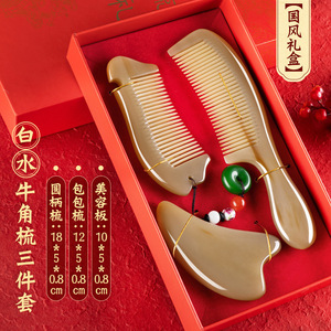 【国风梳礼盒】白水牛角梳三件套