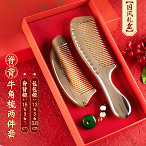 【国风梳礼盒】脊背牛角梳两件套
