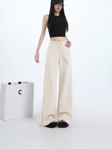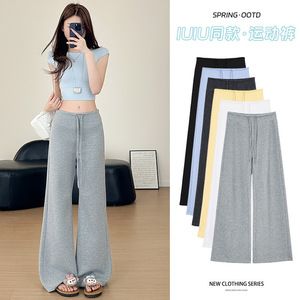 灰色直筒运动裤女2025秋季新款羚羊绒美式休闲卫裤高腰显瘦阔腿裤