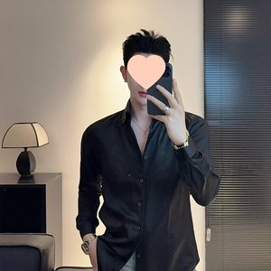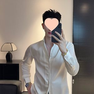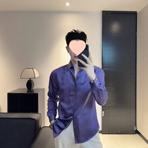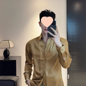 青年男士新款醋酸缎面质感痞帅长袖衬衣百搭小众设计感衬衫上衣男