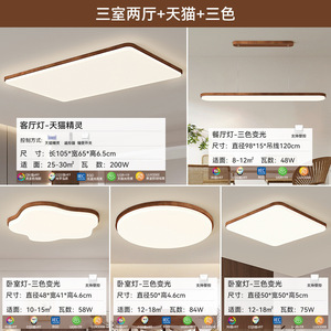 中古风护眼吸顶灯胡桃木色客厅灯2025新款简约现代温馨护眼大厅灯