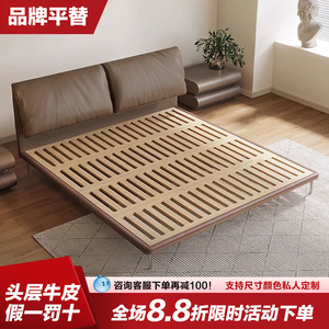 轻奢大象耳朵床意式极简主卧双人床复古榉木软包床现代简约齐边床