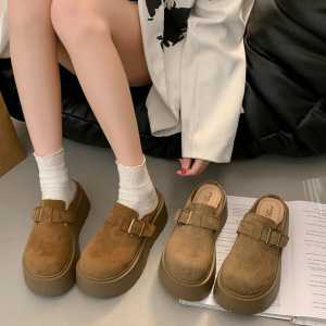 小个子松糕厚底8cm勃肯鞋女2025春季包头半拖鞋潮外穿无后跟单鞋