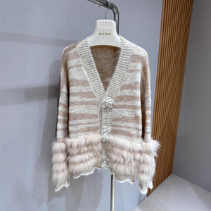 秋冬新狐狸毛皮草拼接毛衣针织开衫外套女宽松V领温柔风年轻显瘦