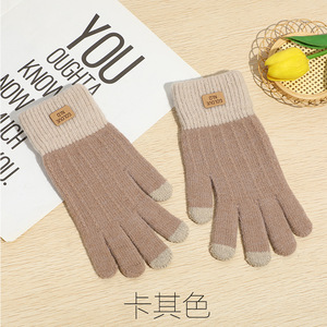 韩国保暖触屏手套女士冬季针织加绒加厚学生骑行防风防寒纯色男生