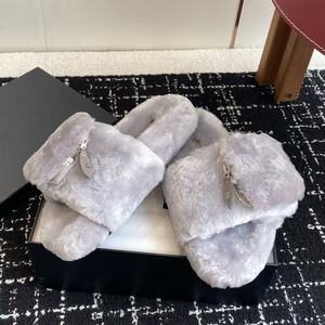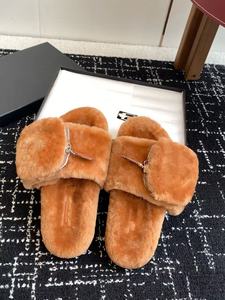 高版2025秋冬新款小香羊毛拉链包包一字露趾厚底时尚休闲毛毛拖鞋