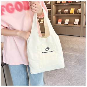 当季新款学院风刺绣设计购物袋帆布收纳包慵懒风ins手拎单肩包包