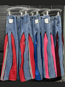 个性街头风拼接撞色牛仔裤2025秋季新款设计感拉链两穿阔腿裤女装