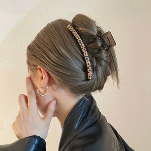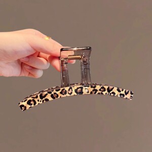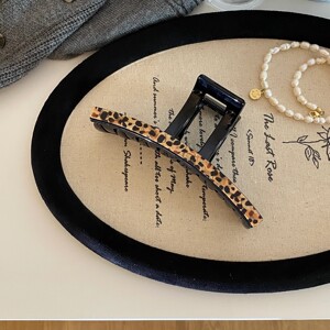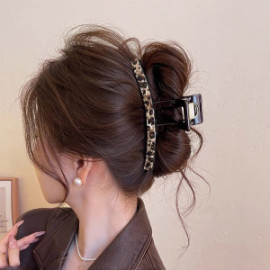 法式老钱风复古豹纹醋酸一字抓夹2025年新款轻奢盘发鲨鱼夹子发夹