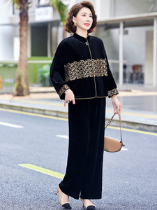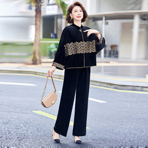 妈妈秋装金丝绒套装中老年女装拉链开衫外套气质2025春秋季两件套