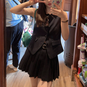 2025夏季新款马甲三件套”高級骨感面料重工时尚套装女短款半身裙