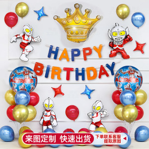 跨境新款奥特曼主题氛围装饰背景墙男孩儿童生日派对场景布置气球