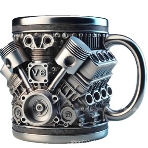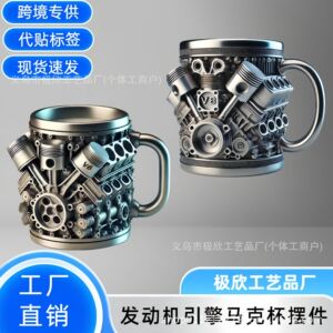跨境发动机V8杯子V6发动机创意马克杯树脂工艺金属立体杯子摆件