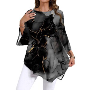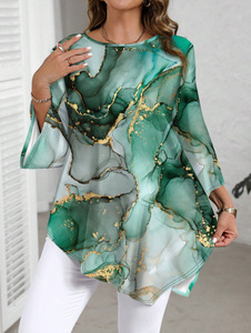 亚马逊独立站外贸2025新款时尚休闲百搭时尚大理石印花圆领长袖T