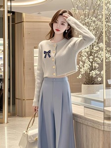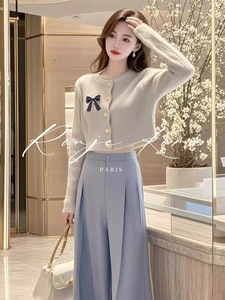 早秋穿搭一整套漂亮女装高端时尚气质小香风毛衣针织开衫裤子套装