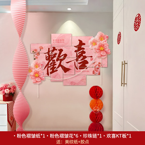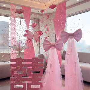 婚房布置套装粉色拉花装饰结婚拍照卧室背景墙网红超大蝴蝶结立柱