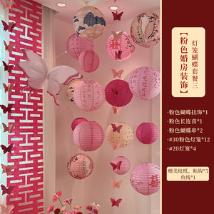 【灯笼蝴蝶套装03】粉色婚房装饰