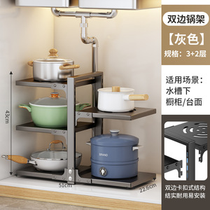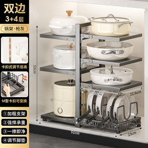严选锅架厨房置物架多层放锅架子台面下水槽橱柜双边锅具收纳架
