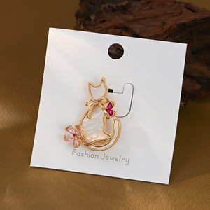 天然母贝可爱花朵猫咪胸针女高档固定防走光别针小众气质西装胸花