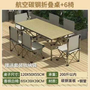 香槟色【高端喷涂工艺】-(七件套)120长桌+6把椅子【送收纳包】