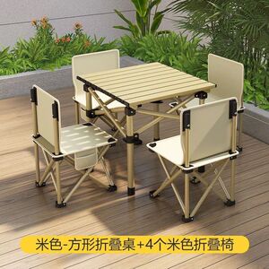 香槟色【高端喷涂工艺】-(五件套)方桌+4把椅子【送收纳包】