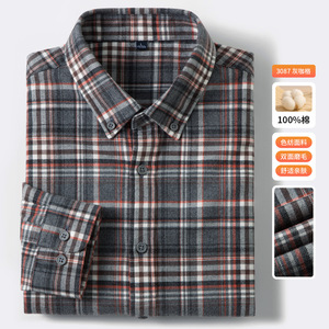 2025秋冬季新款纯棉磨毛衬衫男士长袖格子中青年休闲衬衣全棉衬衫