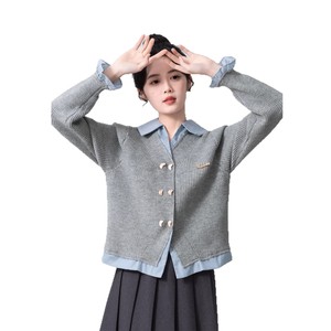 假两件POLO领毛衣女春秋2025新款学院风拼接针织开衫外套短款上衣