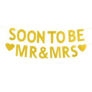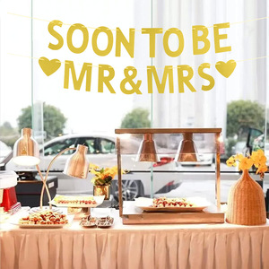 SOON TO BE MR MRS 欧美婚礼派对装饰金粉字母拉旗串旗布置横幅