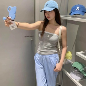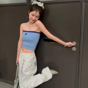 休闲风条纹抹胸背心外穿女夏季2025新款小众别致绝美撞色裹胸上衣