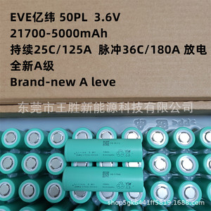 EVE50PL亿纬21700 5000mAh动力持续125A(25C)航模无人机电动工具