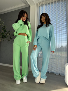 外贸独立站跨境欧美风时尚女装休闲运动套装宽松上衣阔腿裤两件套