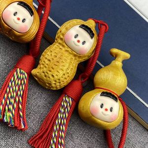 可爱黄杨木文玩葫芦娃手捻葫芦挂件挂件 天然胖墩福禄手把件木艺