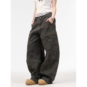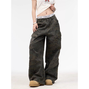 ONLPP1美式复古迷彩工装裤小众设计弯刀裤男女镰刀裤情侣休闲裤子