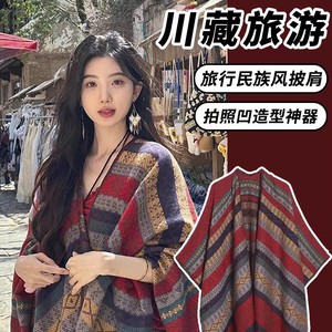 2025新款民族风披肩云南西藏游围巾女网红同款氛围感百搭披肩批发
