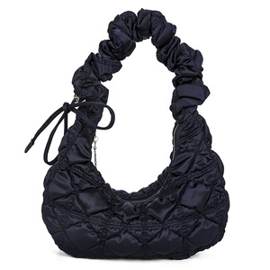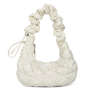 外贸新款缎面月牙包cahmlo单肩褶皱饺子包绣线菱格腋下云朵泡芙包