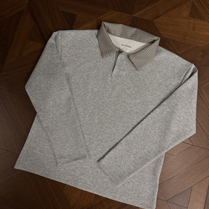 千鸟格拼接太空棉polo松弛长袖Cleanfit短宽抗皱卫衣老钱风