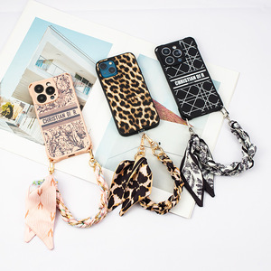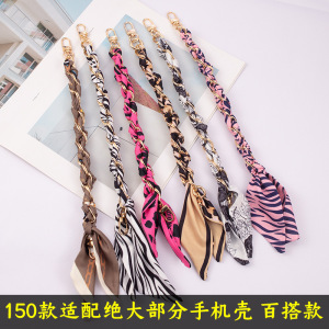 手机挂绳长款丝巾手机链爱心挂脖绳可斜挎金属扣可背印花手机挂绳