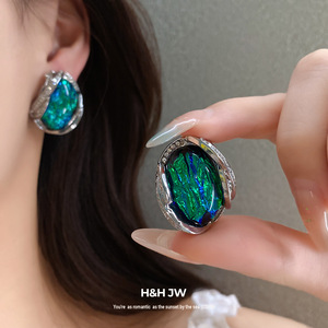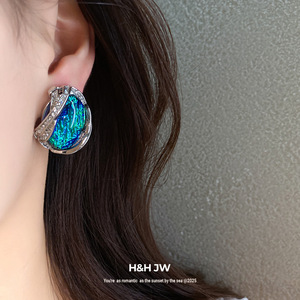 银针镶钻几何形树脂耳环轻奢高级感耳钉女时尚气质耳饰设计感小众