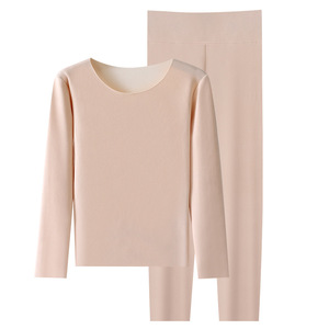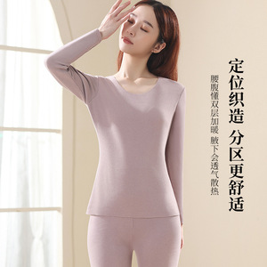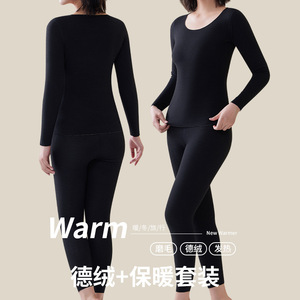 无痕发热德绒保暖套装女加绒加厚双面磨毛AB面大码打底秋衣秋裤女