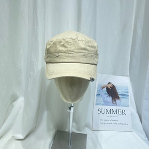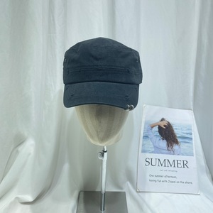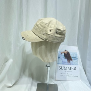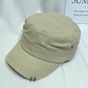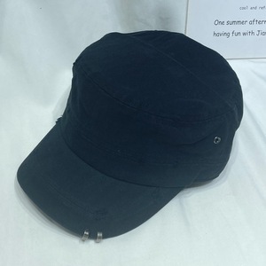 韩系百搭个性金属环平顶帽子女复古做旧磨破鸭舌帽显脸小马术帽潮