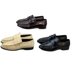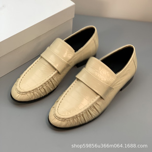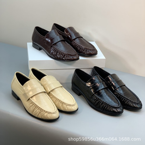 莞产高品质一脚蹬乐福鞋新款复古褶皱鳗鱼皮纹女鞋真皮低跟小皮鞋