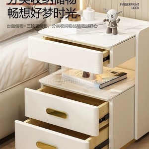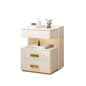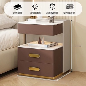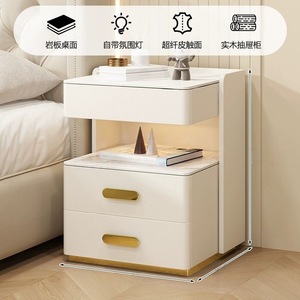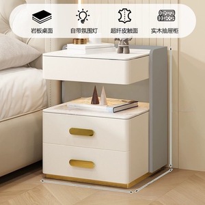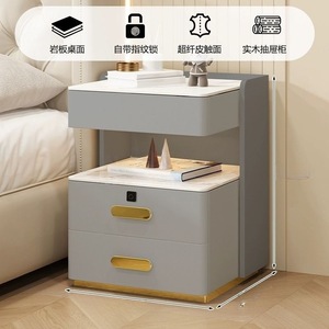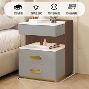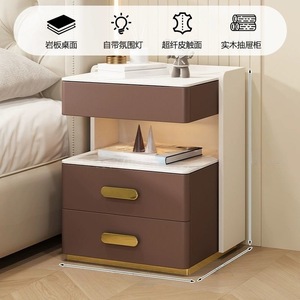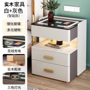 轻奢全实木智能床头柜简约现代多功能家用卧室岩板无线充电床边柜