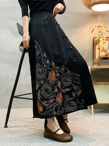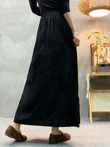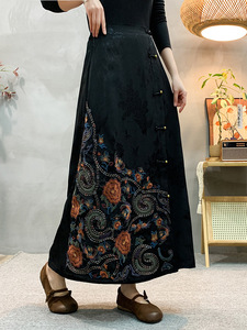 新款民族风重工绣花松紧腰中式国风半身裙马面裙A字裙复古中长裙